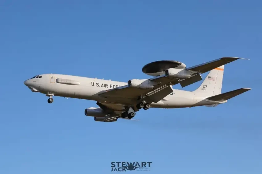 Самолет дальнего радиолокационного обнаружения и управления E-3 Sentry с позывным DENALI01 приземляется на авиабазе Милденхолл в Великобритании