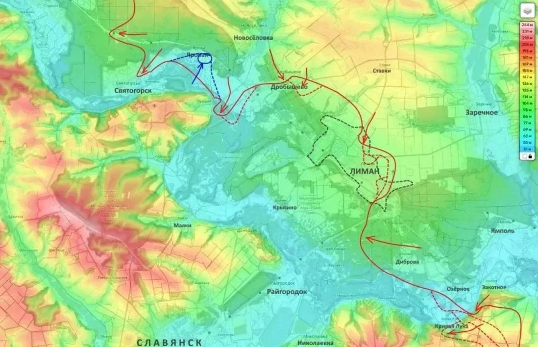 Напомним, сейчас российские войска двигаются к Славянску с двух направлений. При этом наибольших успехов пока удается достигать в районе Красного Лимана. Освобождение этого города еще не завершено, но это не мешает ВС РФ осуществлять давление в глубину обороны противника.