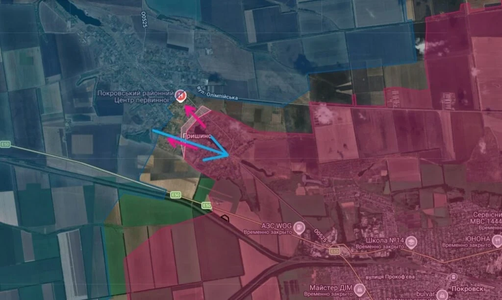 В селе Гришино российские силы уверенно контролируют уже половину территории населенного пункта. Фиксируется продвижение российских войск к Кучерову Яру и расширение зоны присутствия южнее Дорожнего.