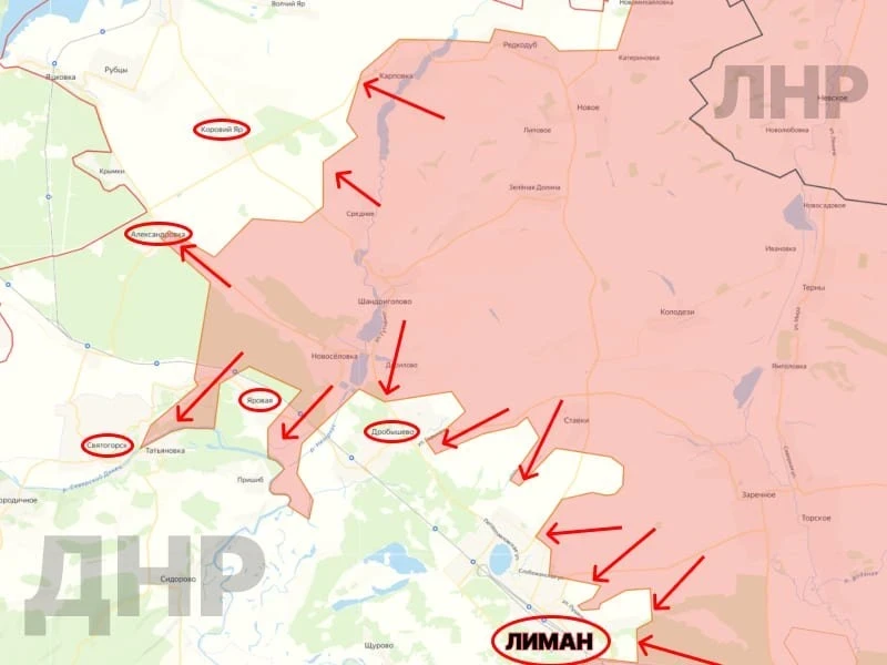 На Лиманском фронте СВО ВС РФ предпринимают попытки продвигаться в направлении Дробышево, Яровой и Святогорска. Cеверная часть Красного Лимана остаётся под контролем ВСУ. Заходы наших подразделений в город носят характер серой зоны.