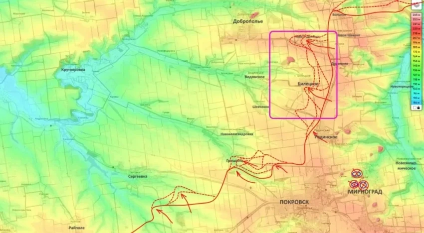 На Покровском участке фронта не смолкают очень ожесточённые боевые действия в населённом пункте Гришино. На сегодняшний день почти половина этого села находится под контролем Вооружённых сил России.