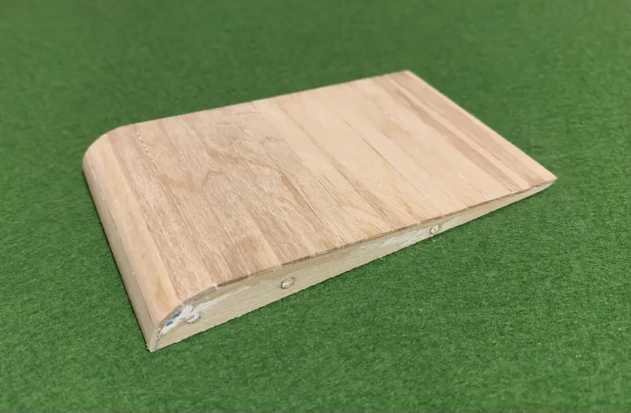 Весьма трудоемкой в изготовлении неожиданно оказался верх крыши беседки.Его целиком прошлось выклеивать из отдельных «досочек» (мешалок) после чего обрабатывать наждачной бумагой