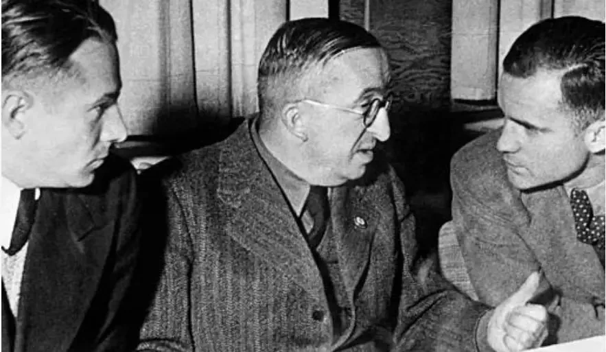 На снимке, датированном 30.01.1939 года, встреча Адольфа Гитлера с ведущими инженерами и промышленниками Третьего рейха, связанными с авиационной и военной промышленностью