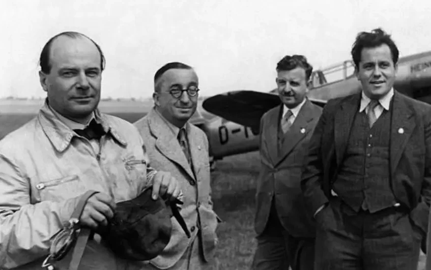 Ганс Дитерле (Hans Dieterle) вылезает из кабины после рекордного полёта. Его встречает ответственный за спецполёты, ассистент Хейнкеля Лупп Кёлер (Lupp Köhler)