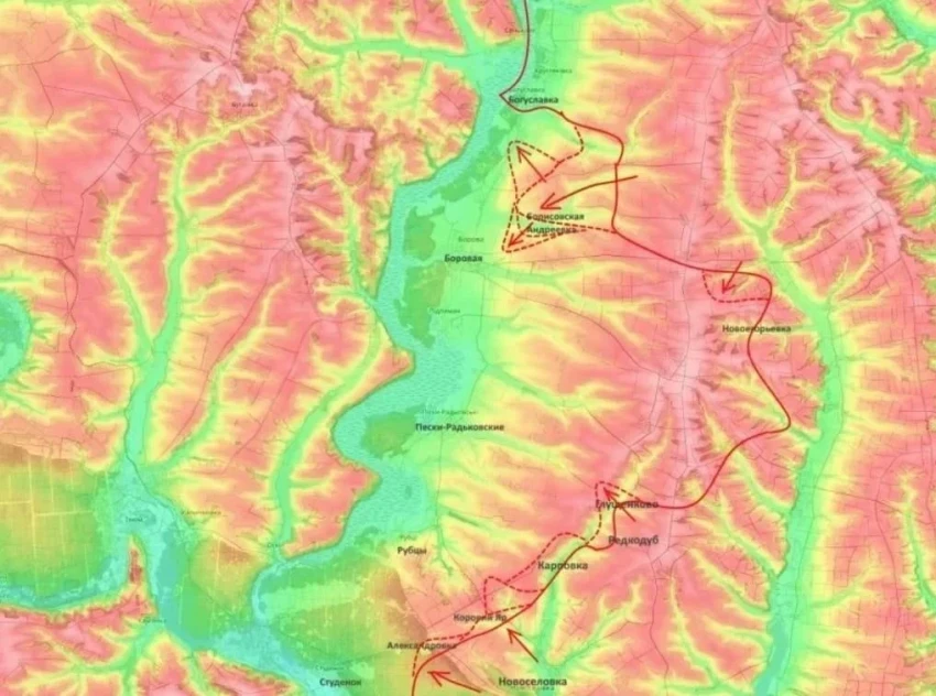 На Боровском направлении продолжаются атаки в районах Коровьего Яра, Карповки и Александровки. Фиксируется постепенное продвижение в сторону Рубцов и Песков-Радьковских. В районе Купянска отмечается оперативная пауза, связанная с перегруппировкой сил.