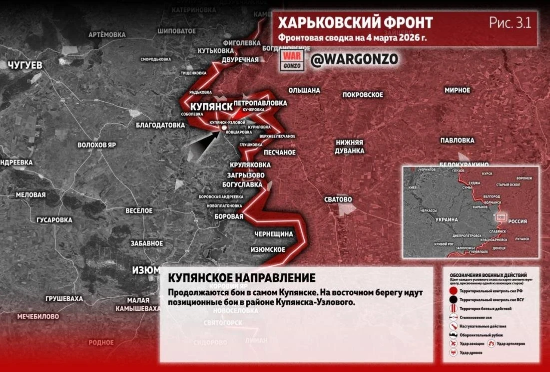 ВС РФ с тяжёлыми боями вытесняют ВСУ под Купянском: свежая карта боевых действий на 4 марта 2026