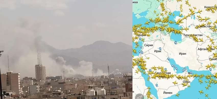 Тегеран в дыму после первых ударов, гражданская авиация обходит Иран стороной