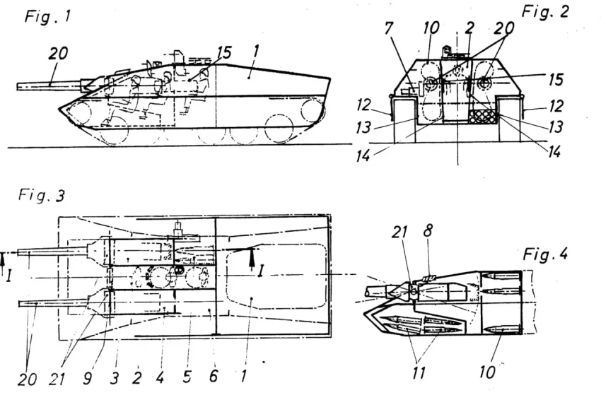 Рассматривались идеи с двумя основными калибрами в танковом корпусе и в Советском Союзе. На этапе макетного проектирования харьковского «Объекта 490» в конце 80-х годов существовал концепт с двумя основными орудиями. Причем башня предусматривалась вращающаяся. Позже всё перетекло в тему «Содружество», которая так и осталась нереализованной.