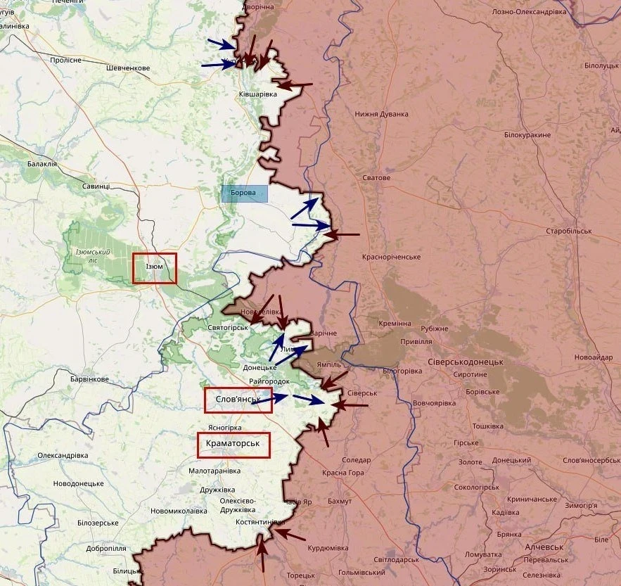 МО РФ подтвердило освобождение Дробышево и Яровой. Российские подразделения давят к левому берегу Северского Донца у Святогорска и Яровой. ВСУ отходят из Яровой, контратакуют и подтягивают резервы к Святогорску и Пришибу. Позиционные бои на северо-западе Красного Лимана и в лесах у Дибровы. Уничтожена переправа у Богородичного.