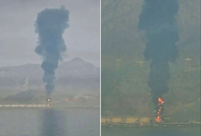 В результате прилёта на судне с нефтью, принадлежавшей США, вспыхнул мощный пожар. О судьбе экипажа на данный момент официально не сообщается. В местных пабликах пишут, что как минимум 8 членов экипажа были эвакуированы береговой охраной.