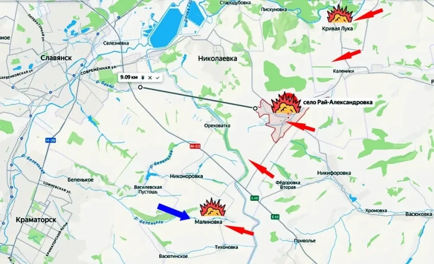 Но самое важное, что село с окрестностями превращено противником в очень хорошо укрепленный район, чему способствует расположение на господствующих высотах. Фактически Рай-Александровка является предпоследним крепким рубежом обороны ВСУ на подступах к Славянску. Впереди еще остается только Николаевка, но она немного северо-западнее. По прямой от Рай-Александровки до окраин одного из последних, наряду с Краматорском, крупного узла обороны ВСУ в ДНР (Славянска) менее десяти километров.