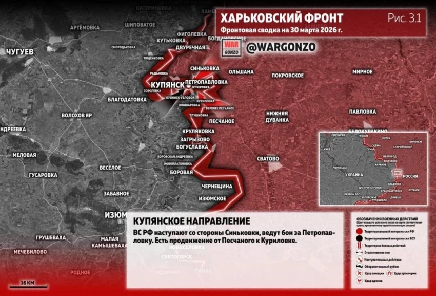 Главные новости » Эксклюзив » ВС РФ на Купянском направлении наступают со стороны Синьковки: подробности боевых действий на 30.03.2026
