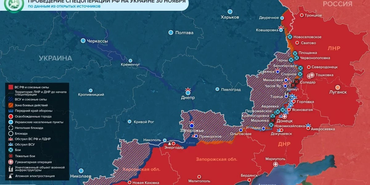 Обновилась карта боевых действий на Донбассе и Украины 1 декабря 2022, новые направления спецоперации на Украине, свежие данные с фронта