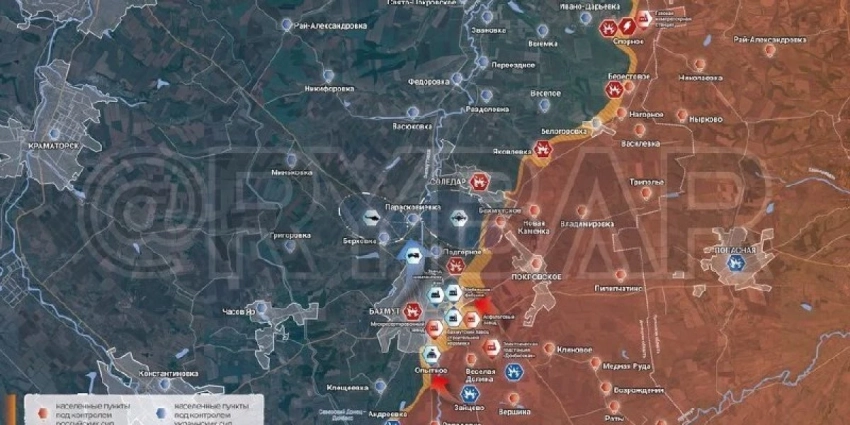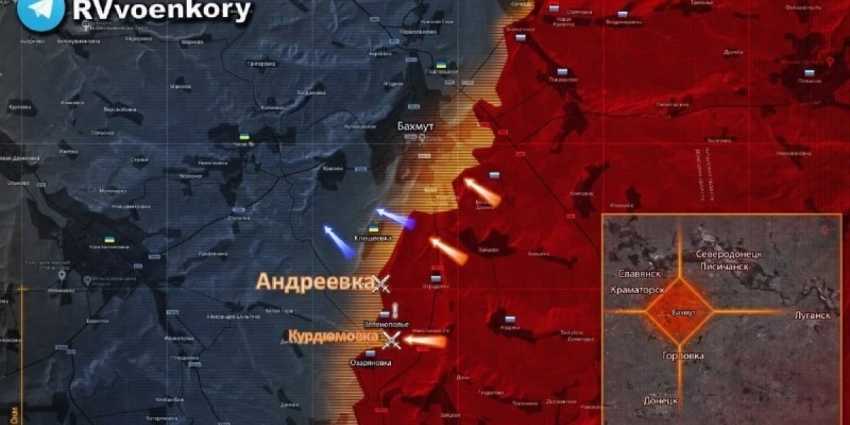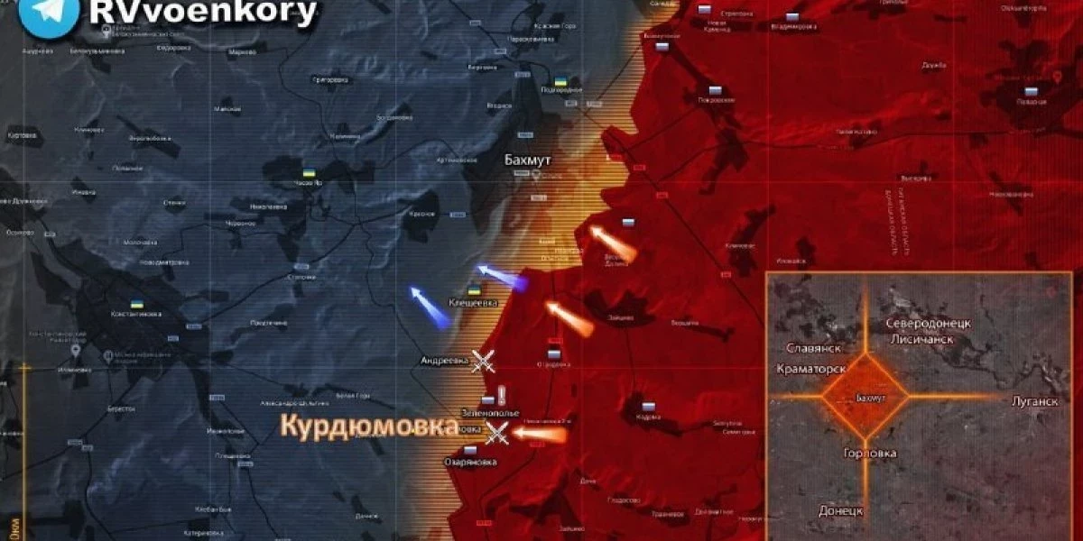 ▪️На юге от Бахмута (Артемовска) штурмовые отряды ЧВК «Вагнер» и подразделения НМ ДНР ведут зачистку прилегающих к Курдюмовке районов.