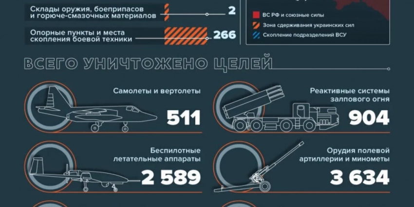 ? нанесено поражение 97-ми артиллерийским подразделениям ВСУ на огневых позициях, живой силе и военной технике в 157-ми районах.