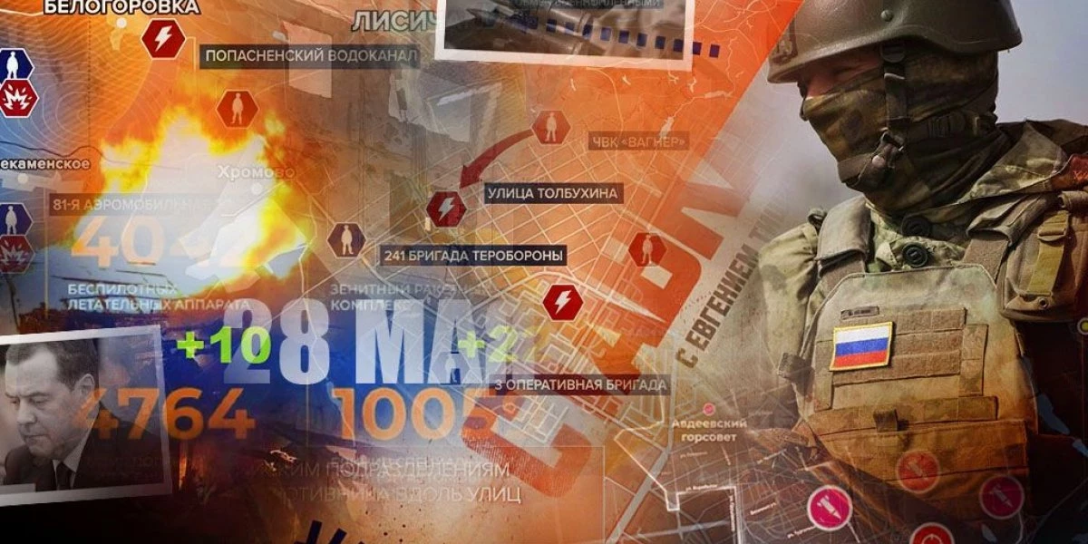 Карта боевых действий на Украине сегодня, обстановка к утру 26 июня 2023 года от Mash. Бои за Авдеевку