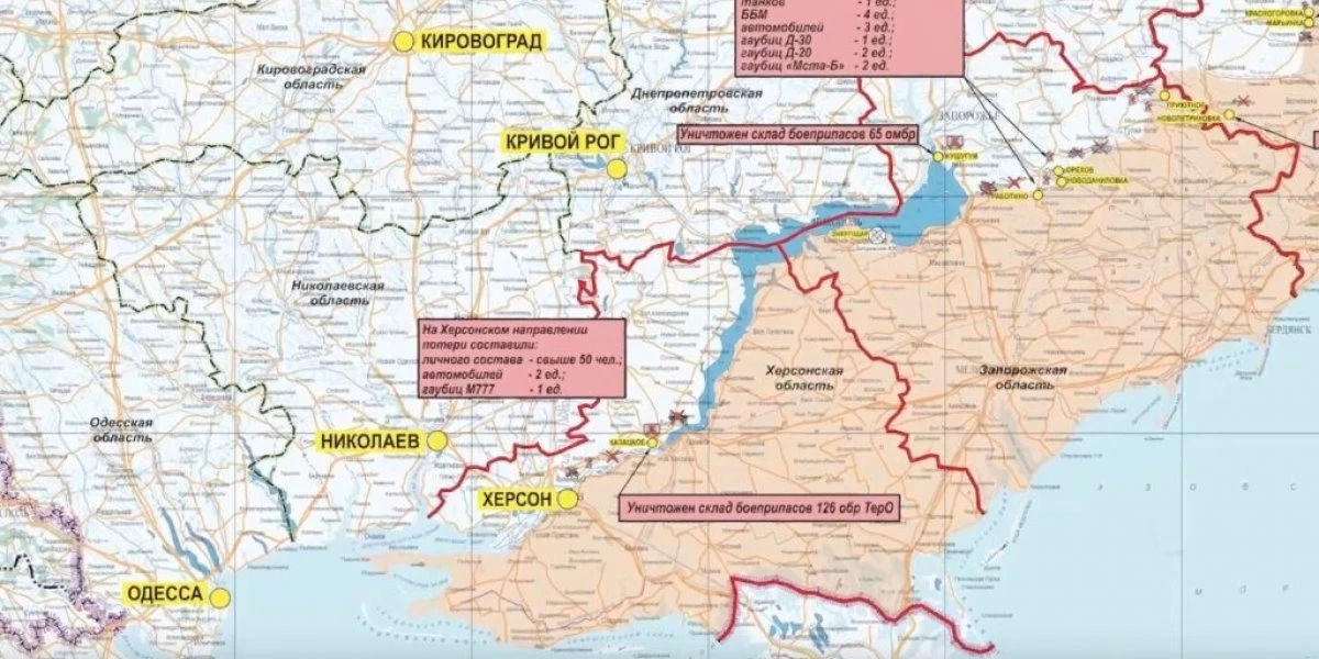 Карта боевых действий на Украине, к утру 26 июня 2023г., Херсонское направление