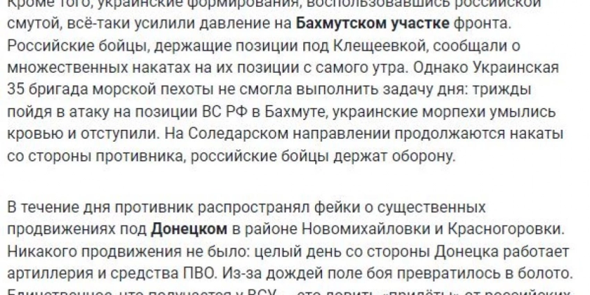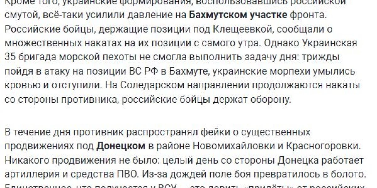 Фронтовая сводка Семена Пегова за 25.06.23 г. Донецкий фронт и Артёмовское направление