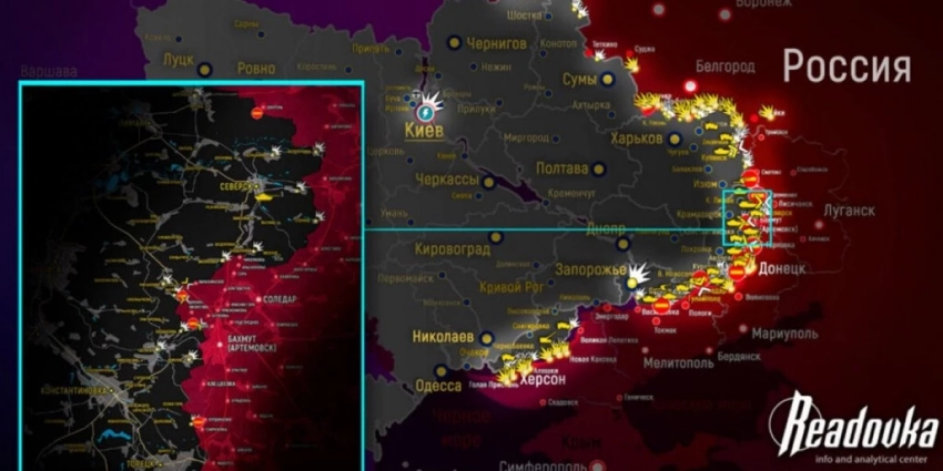 Карта боевых действий на Украине сегодня, к утру 26 июня 2023г. Карта от readovka.news