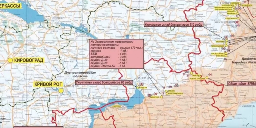 Карта боевых действий на Украине, к утру 26 июня 2023г., Запорожское направление