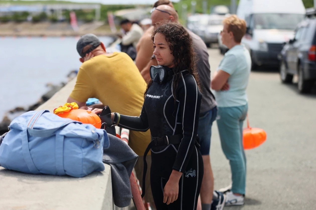 В заплыве участвовали как опытные пловцы, так и начинающие. Если профессионалы ставили перед собой цель выиграть, то начинающие хотели проверить свои силы. Участникам разрешалось использовать гидрокостюмы и ласты. Вместе с другими пловцами свои силы решила проверить начальник управления физической культуры и спорта администрации Владивостока Юлия Вельбик. Она сумела проплыть все три километра.
