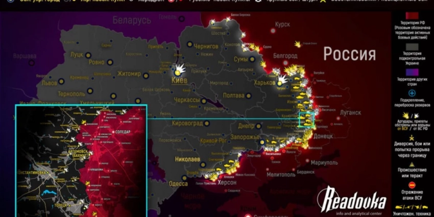 Карта боевых действий на Украине сегодня 19.05.2023 в реальном времени на сейчас