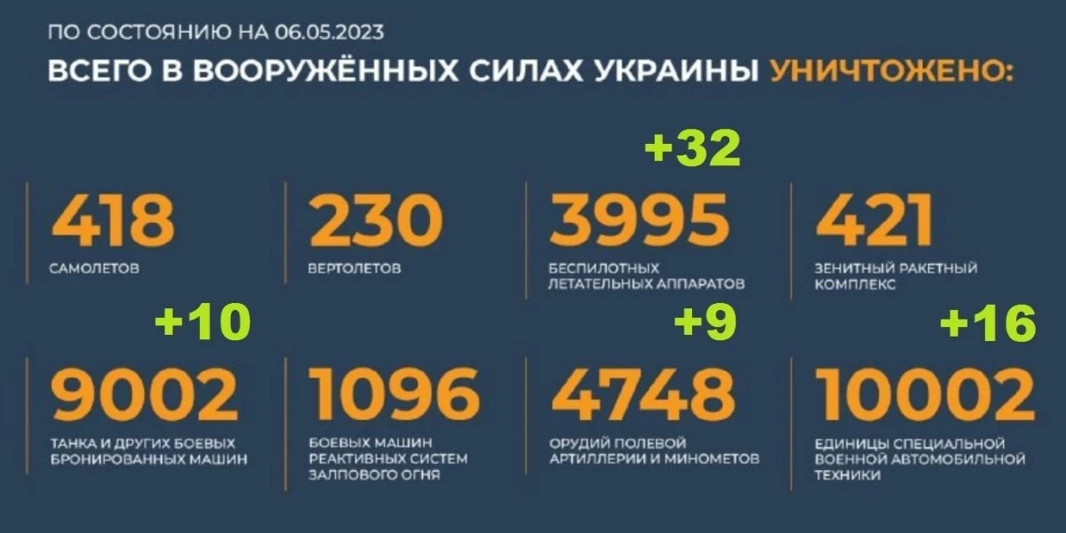 Брифинг Министерства обороны Российской Федерации о ходе проведения специальной военной операции на территории Украины по состоянию на 8 мая 2023 года