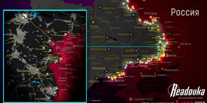 Новая карта боевых действий на Украине 8 мая 2023. Спецоперация России на Украине, день 439-й спецоперации РФ