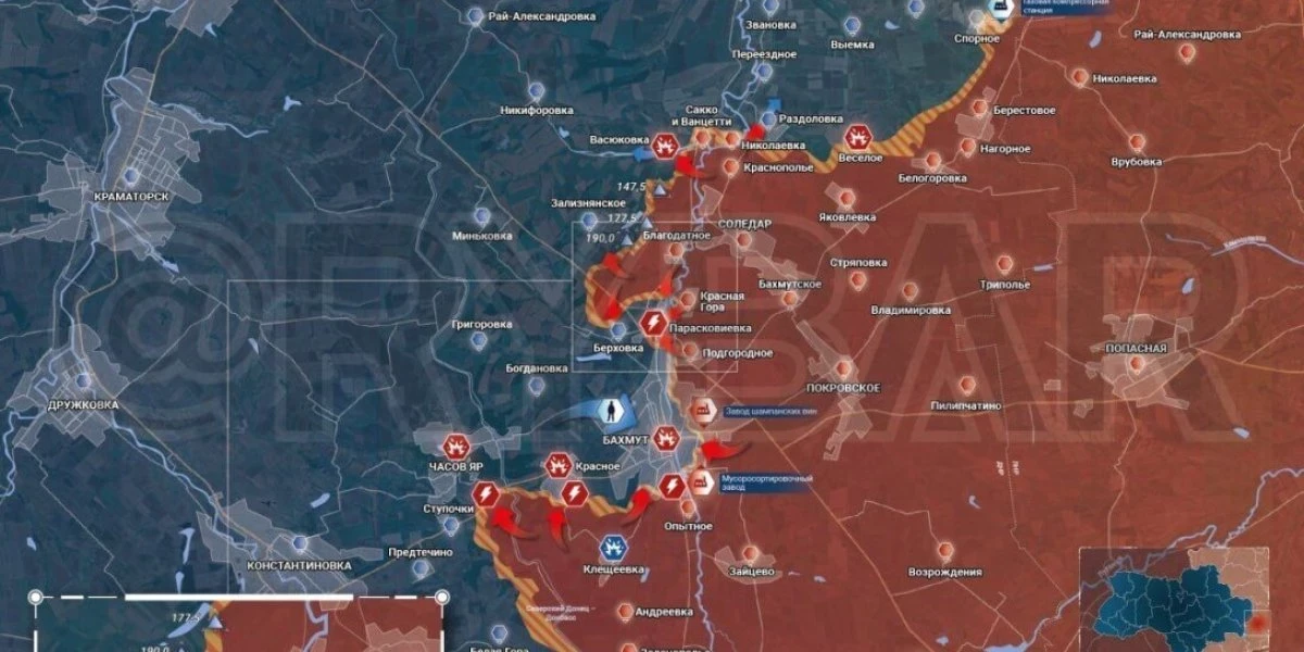 - В самом Бахмуте продолжаются уличные бои в районе Мариупольского кладбища. Перерезано снабжение ВСУ на участке трассы Бахмут — Константиновка.