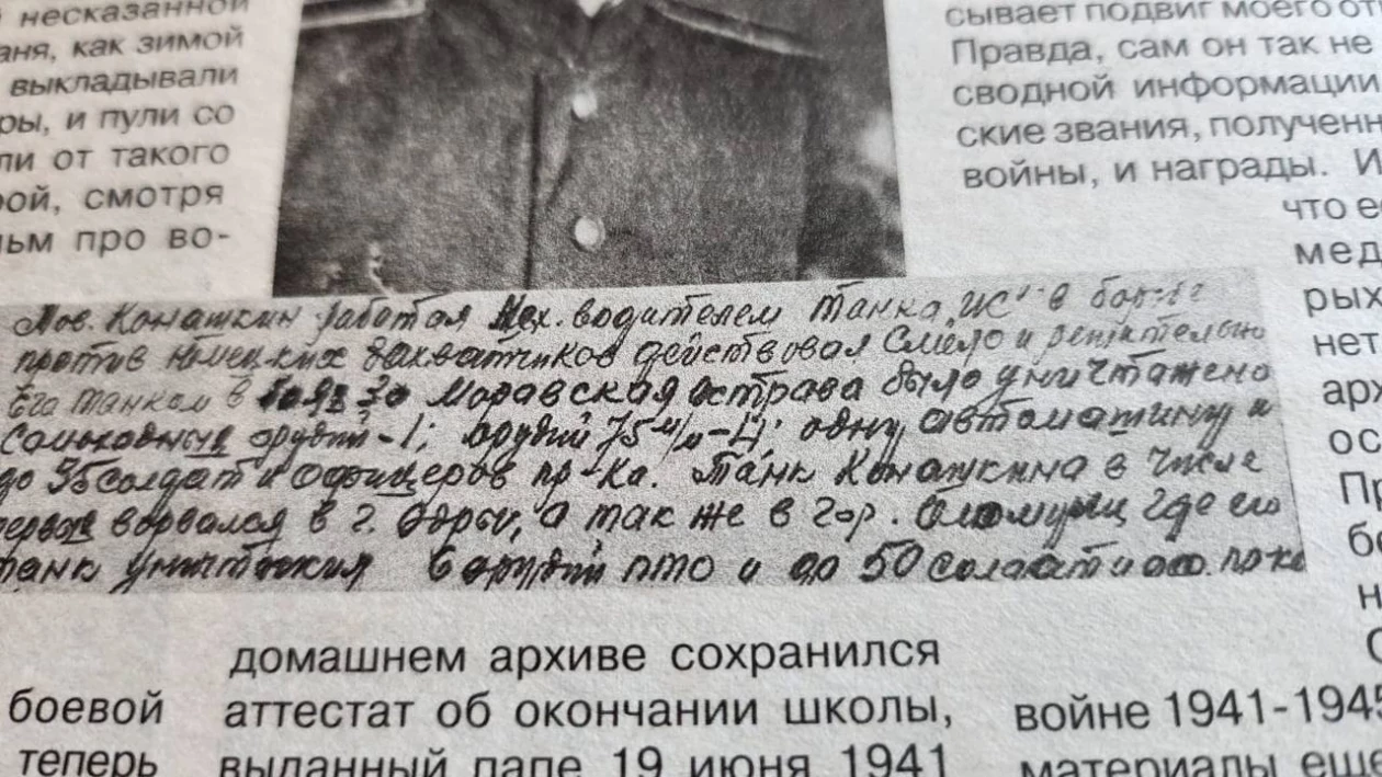 Копия документа, описывающего подвиг Александра Канашкина. Фото: Из личного архива М. Шпака
