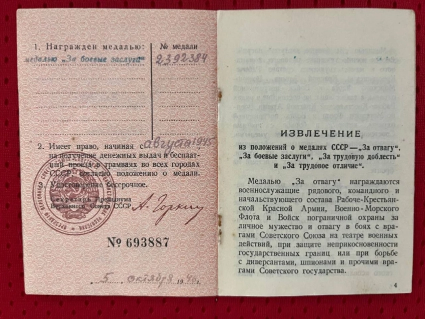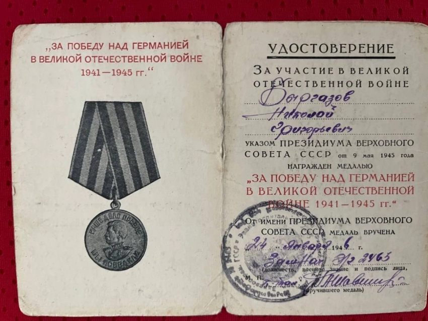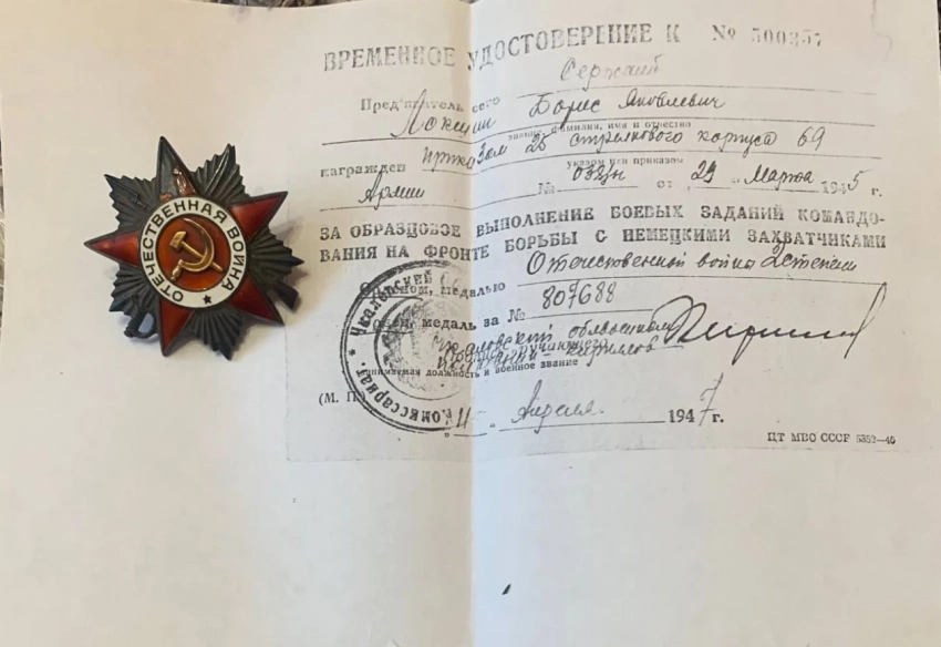 Удостоверение о награждении Бориса Локшина. Фото: Из личного архива Ю. Локшиной