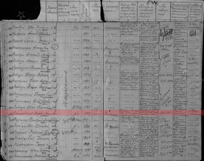 Запись в реестре военнослужащих о Мефодии Кишаковском. Фото: Из личного архива О. Кишаковской