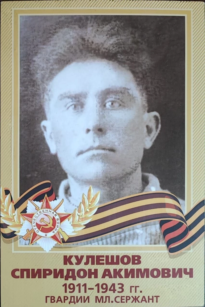 Кулешов Спиридон Акимович (1911 — 1943) — прадед по отцовской линии фотографа и оператора ИА PrimaMedia Евгения Кулешова.