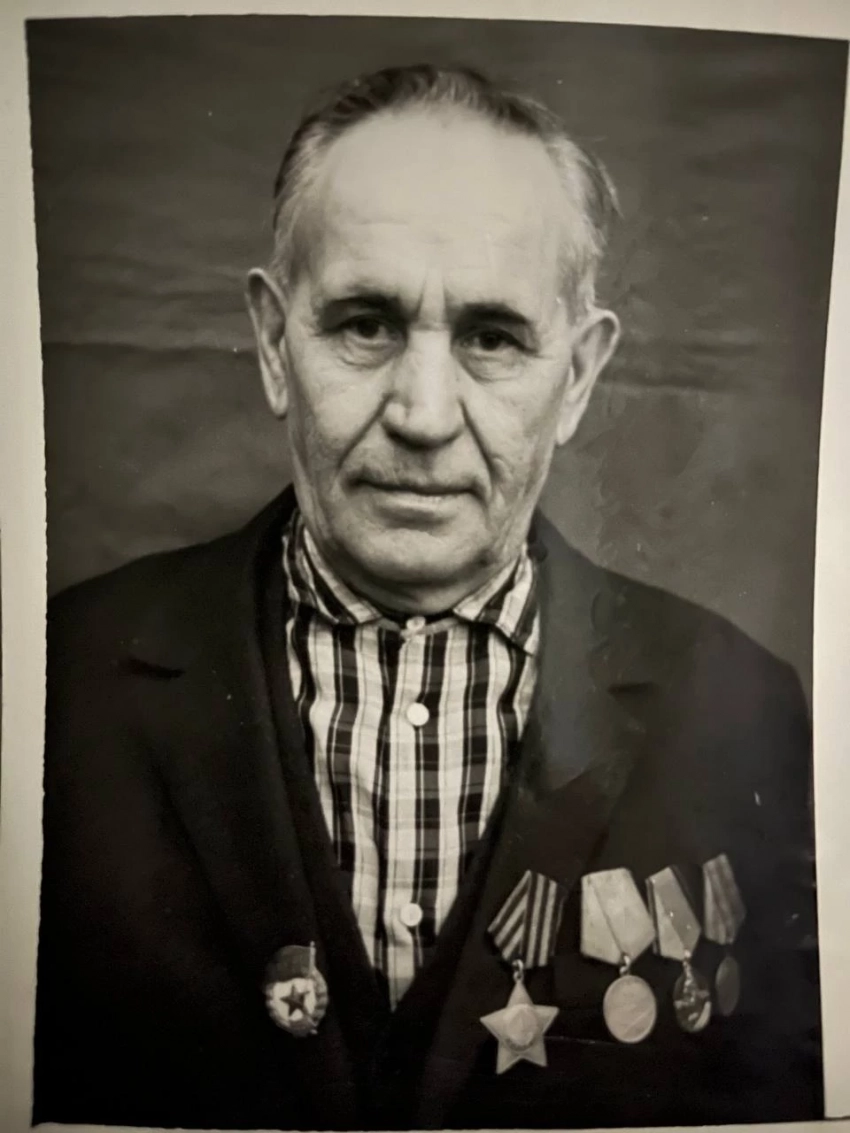 “Дед родился в селе Дряхлы (ныне село Уральское Чайковского района Пермского края) в 1906 году. Он всю жизнь проработал в колхозе кузнецом и мельником. Дважды призывался в ряды действующей армии. После ранения в начале войны он был комиссован, но в 1944 году вновь был призван Фокинским райвоенкоматом Молотовской области (Пермь в своё время называлась городом Молотов). Войну закончил гвардии рядовым орудийным номером 2-го дивизиона 41 гвардейской миномётной Померанской ордена Александра Невского бригады 22 артиллерийской дивизии прорыва 5 армии 1-го Белорусского фронта”, — рассказывает Виктор Суханов.