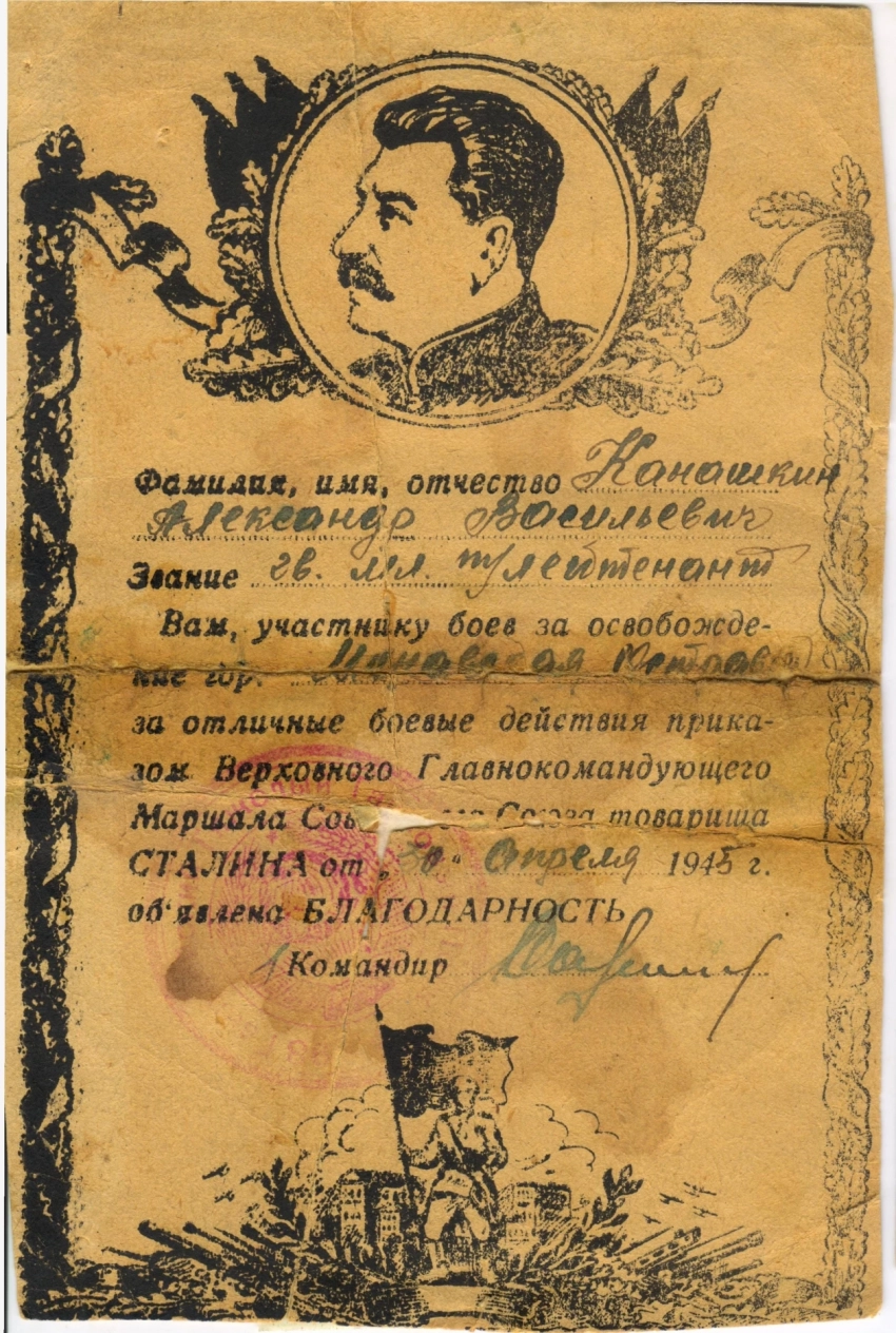 Сталинская благодарность. Фото: Из личного архива М. Шпака