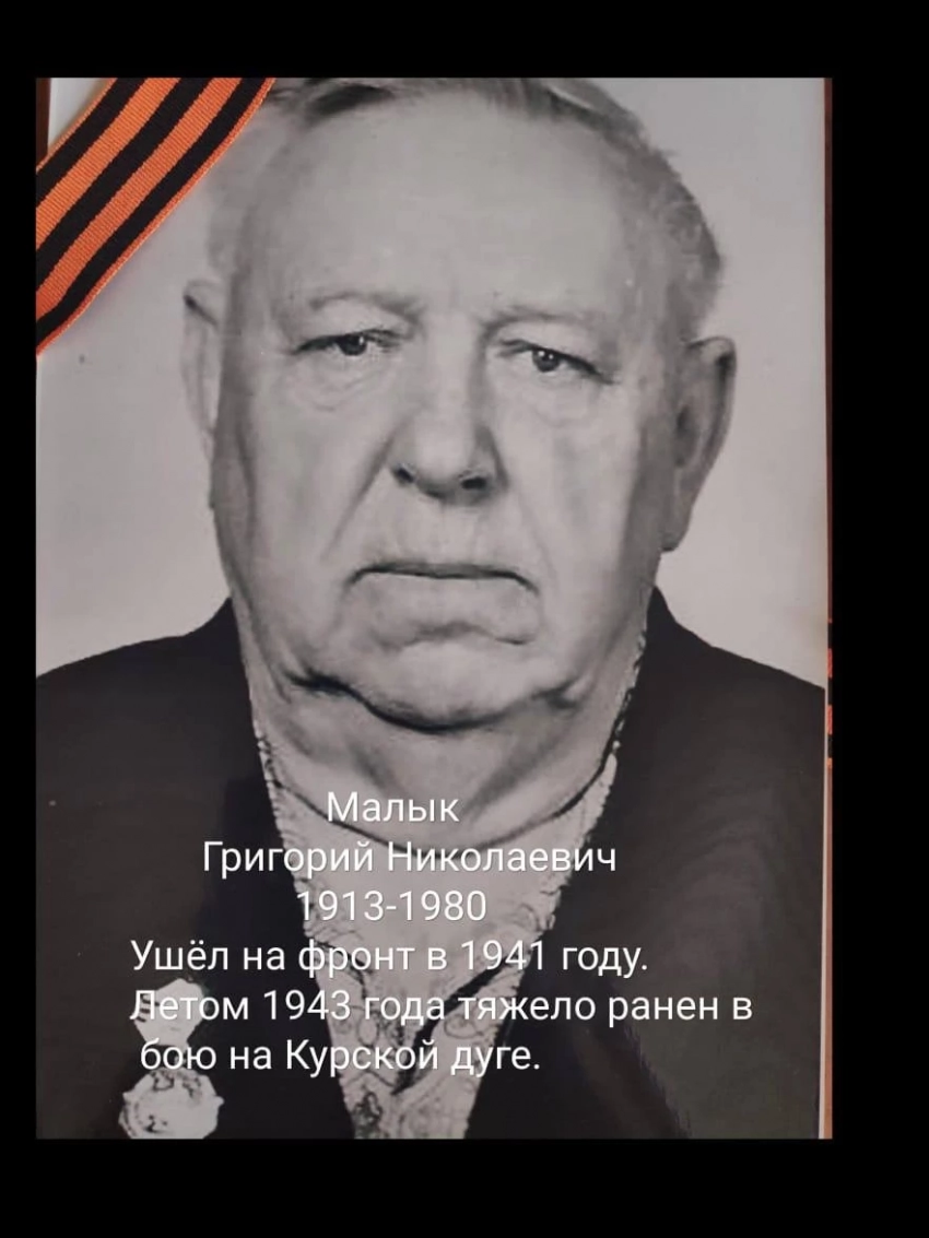 Малык Григорий Николаевич (1913 — 1980) — прадед менеджера ивент-отдела ИА PrimaMedia Марины Кострюковой.