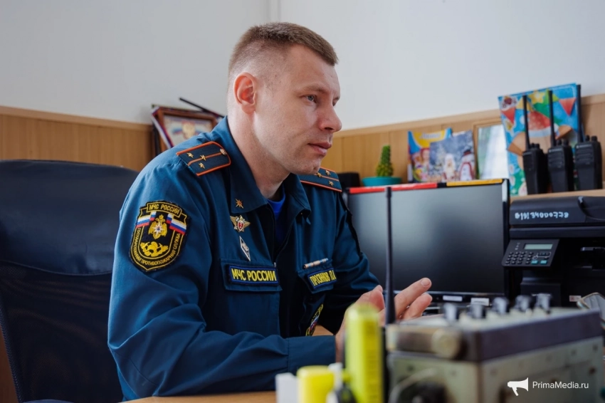 Павел Просянников, начальник 10 пожарно-спасательной части (ПСЧ) второго пожарно-спасательного отряда Главного управления МЧС России по Приморскому краю. Фото: Евгений Кулешов, ИА Primamedia