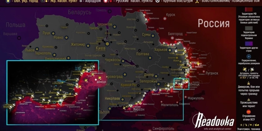 В то же время украинские силы увеличили использование артиллерии и ракет в районах продвижения российских войск. Наведение на цель осуществляется расчетами БПЛА, а также беспилотниками «Байрактар» в аэропорту Днепропетровска. Карта
