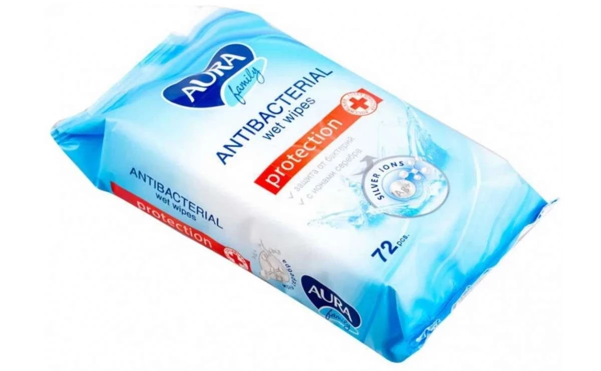Влажные салфетки AURA Family с усовершенствованным антибактериальным составом с ионами серебра. Ионы серебра обеспечивают надежную защиту от бактерий. Научно доказано, что ионы серебра обладают бактерицидными, противовирусными, противогрибковыми и обеззараживающими свойствами. Очищающий лосьон разработан для ежедневного использования салфеток всеми членами семьи. Салфетки прошли клинические, микробиологические и токсикологические испытания. Продукция поддерживается Российским Красным Крестом. Удобный формат легко поместится в сумку или рюкзак.