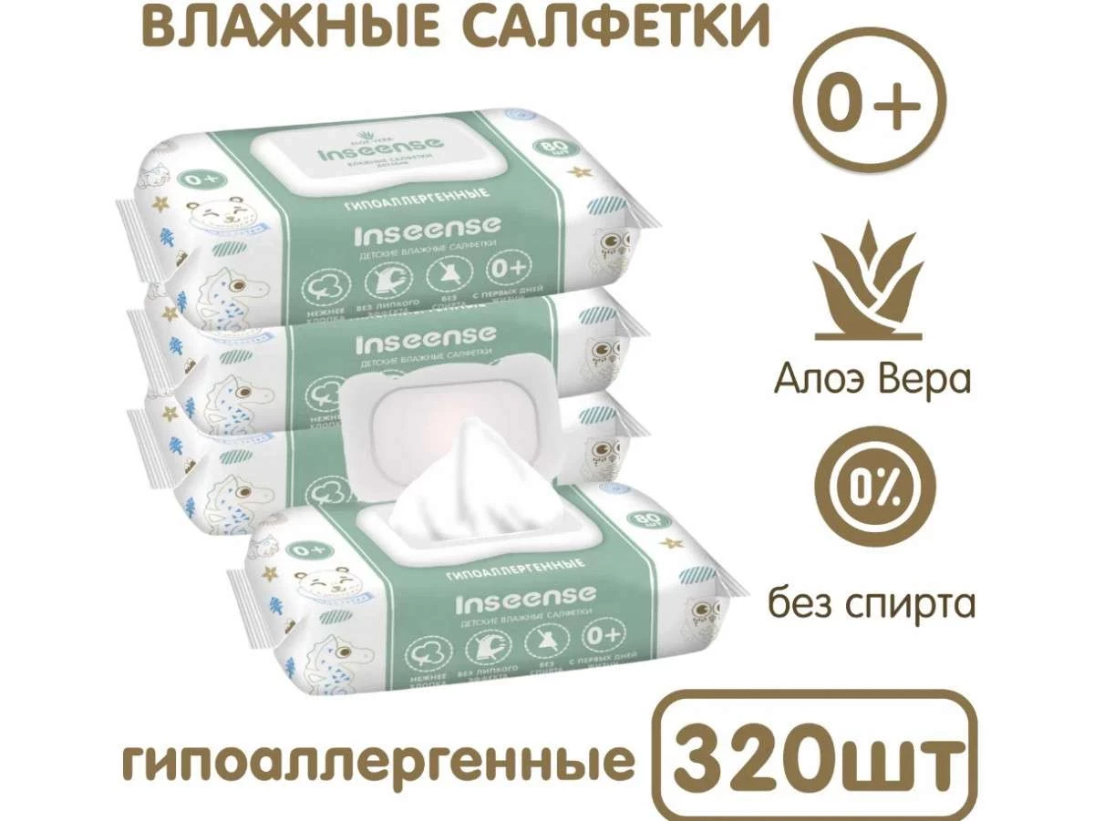 Салфетки Inseense влажные с алое вера набор 4*80 шт