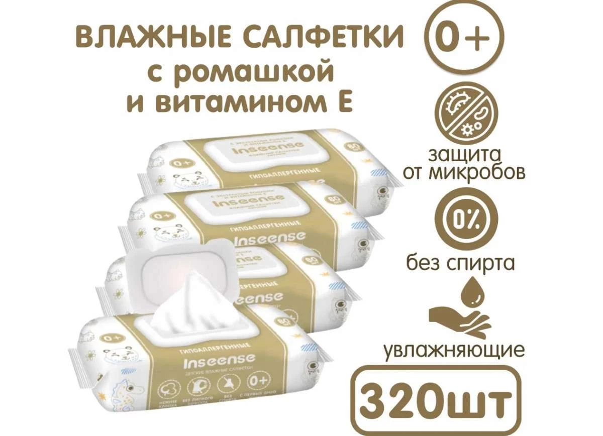 Салфетки Inseense влажные для детей c экстрактом ромашки и витамином Е