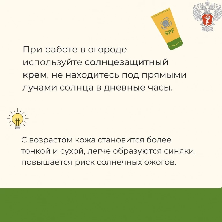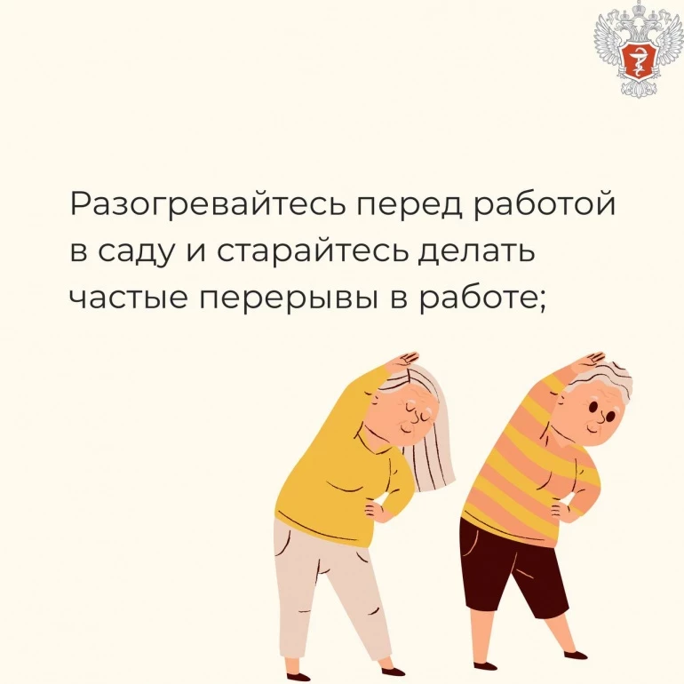 Работа в саду — своего рода отличная физзарядка, поэтому пожилым людям она только на пользу. Однако важно заниматься ей правильно, чтобы не получить травму, солнечный удар или ожог. Ценные советы дали в Минздраве России.
