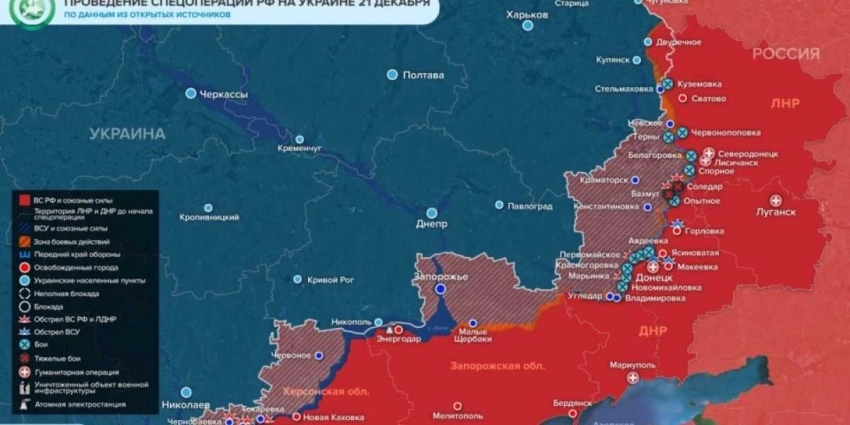 - Последняя обновленная карта военных действий на Украине сегодня, 21 декабря 2022