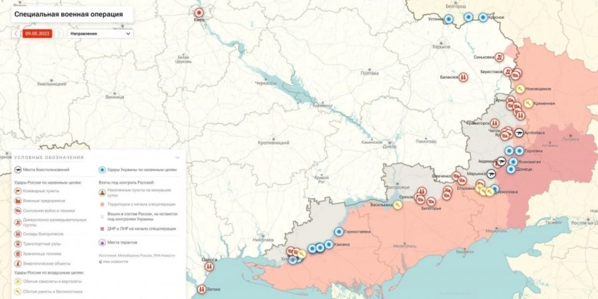 Специальная военная операция на Украине: Карта военных действий и ситуация на фронтах вечером 9 мая 2023 года