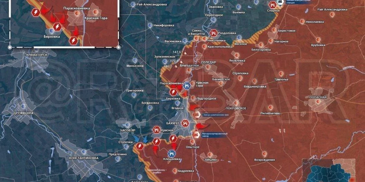На севере после освобождения Парасковиевки штурмовые отряды ЧВК «Вагнер» ведут наступление на северо-западный пригород Бахмута — Берховку. Через село проходит несколько важных автомобильных дорог, с помощью которых проходит снабжение группировки.