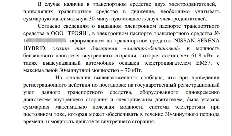 “Согласно уточняющим данным, при расчёте транспортного налога нужно опираться на принципы взаимодействия гибридной установки с колесами, то есть мы суммируем только те мощности, которые приводят в движение непосредственно колеса. Например, в гибридной системе автомобиля Nissan e-Power с двигателем объёмом в 1,2 л колёса работают только от электромотора, никаких совместных режимов работы нет. Руководствуясь уточняющим письмом, считать нужно только мощность этого электромотора”, — комментирует эксперт.