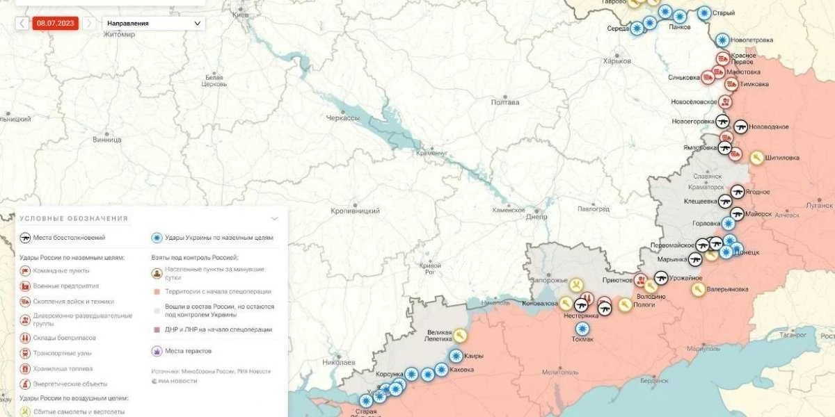 Карта боевых действий на Украине сегодня 08.07.2023 в реальном времени на сейчас