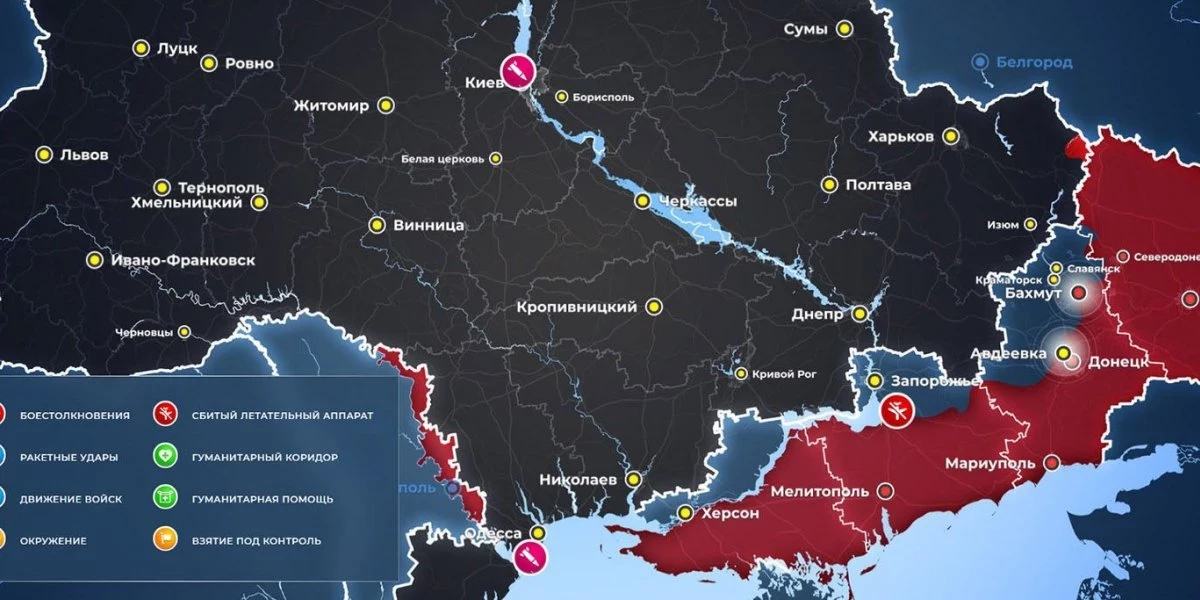 Карта боевых действий на Украине, к утру 2 июня 2023г., от РИА Новости. Карта специальной военной операции.