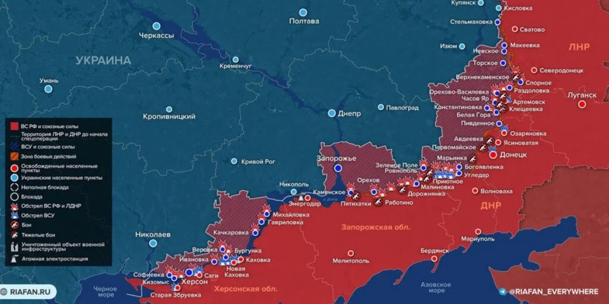 Карта боевых действий на Украине, к утру 21 июня 2023г., от РИА Новости
