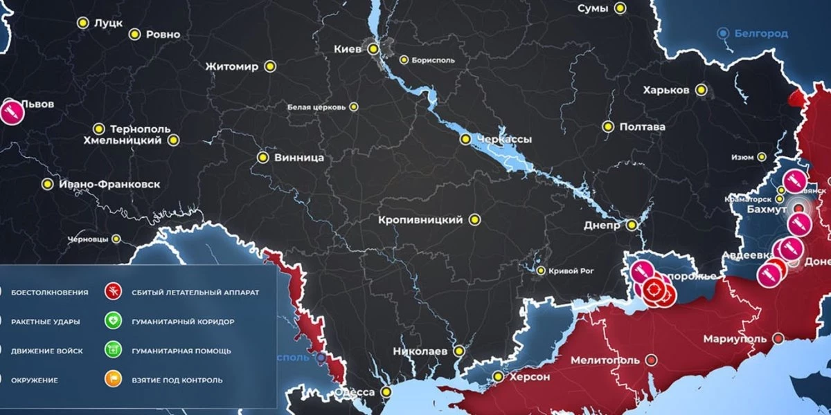 Карта боевых действий на Украине сегодня, Общая обстановка к утру 21 июня 2023 года от Mash